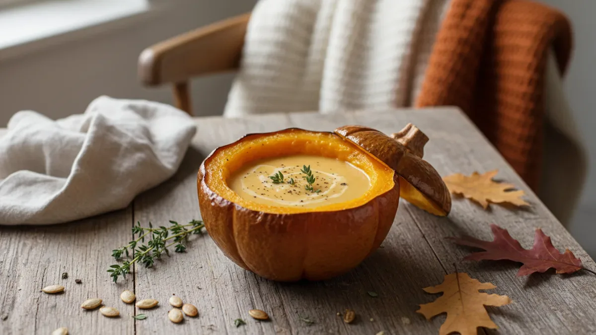 ซุปฟักทอง acorn สูตรพิเศษจากเชฟ Brooke Baevsky ที่เปลี่ยนฟักทองเป็นชามกินได้ เพิ่มความพิเศษให้มื้ออาหารด้วยรสชาติคาราเมลไลซ์และกลิ่นหอมของไธม์