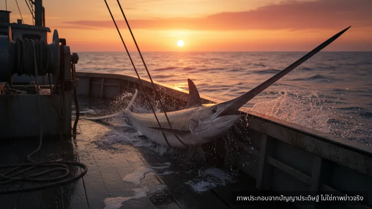 ปลาซอร์ดฟิชยักษ์ 480 ปอนด์ กัปตันสู้ 5 ชม. ก่อนแบ่งให้คนทั้งเมือง
