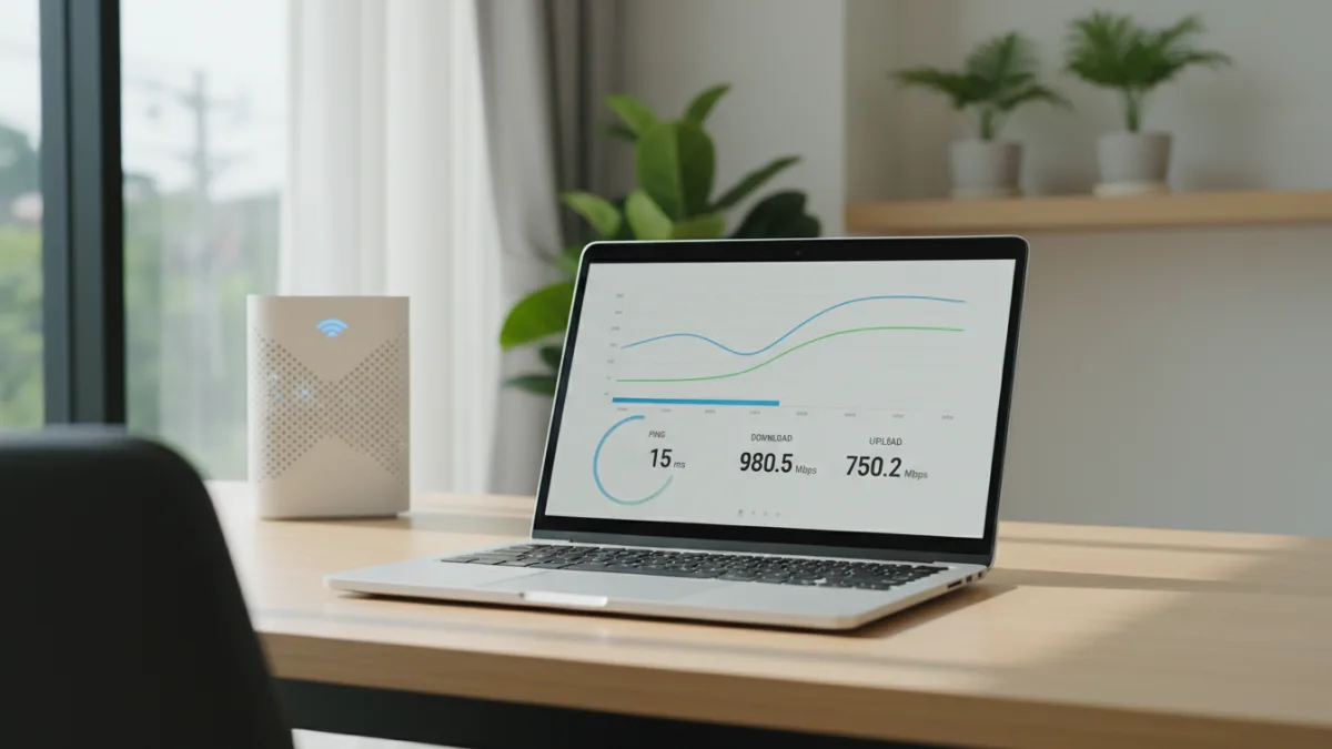 - Download Speed: คือความเร็วในการรับข้อมูลจากอินเทอร์เน็ตมายังอุปกรณ์ของคุณ ยิ่งสูงยิ่งดี (หน่วยเป็น Mbps) มีผลโดยตรงกับการดูวิดีโอสตรีมมิ่ง ฟังเพลง หรือดาวน์โหลดไฟล์ขนาดใหญ่